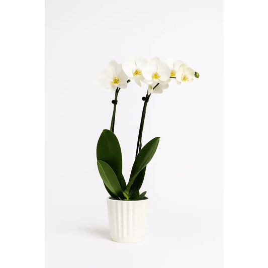 Jardin d'orchidées blanches élégant dans un bol en céramique incurvé – Présentoir de 60 cm